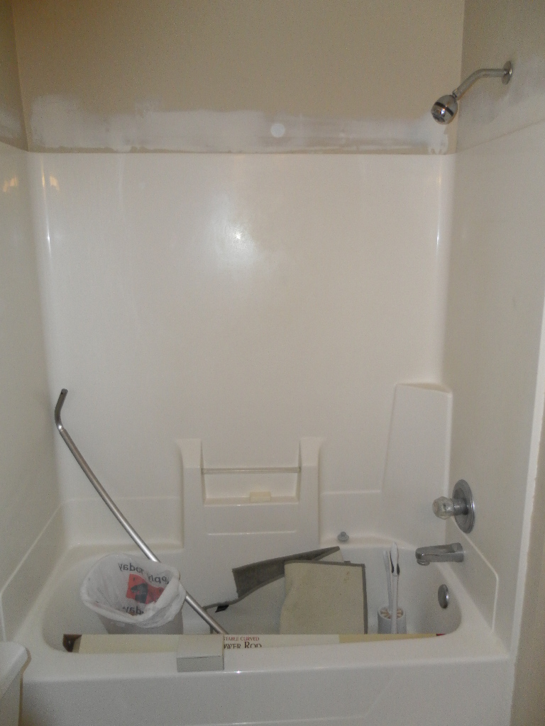 Demo complete. Time to go pick up some hardy backer and some tile Today is Sunday, and I can get some tile for, 88 cent, at Menaaard's, baybee!!