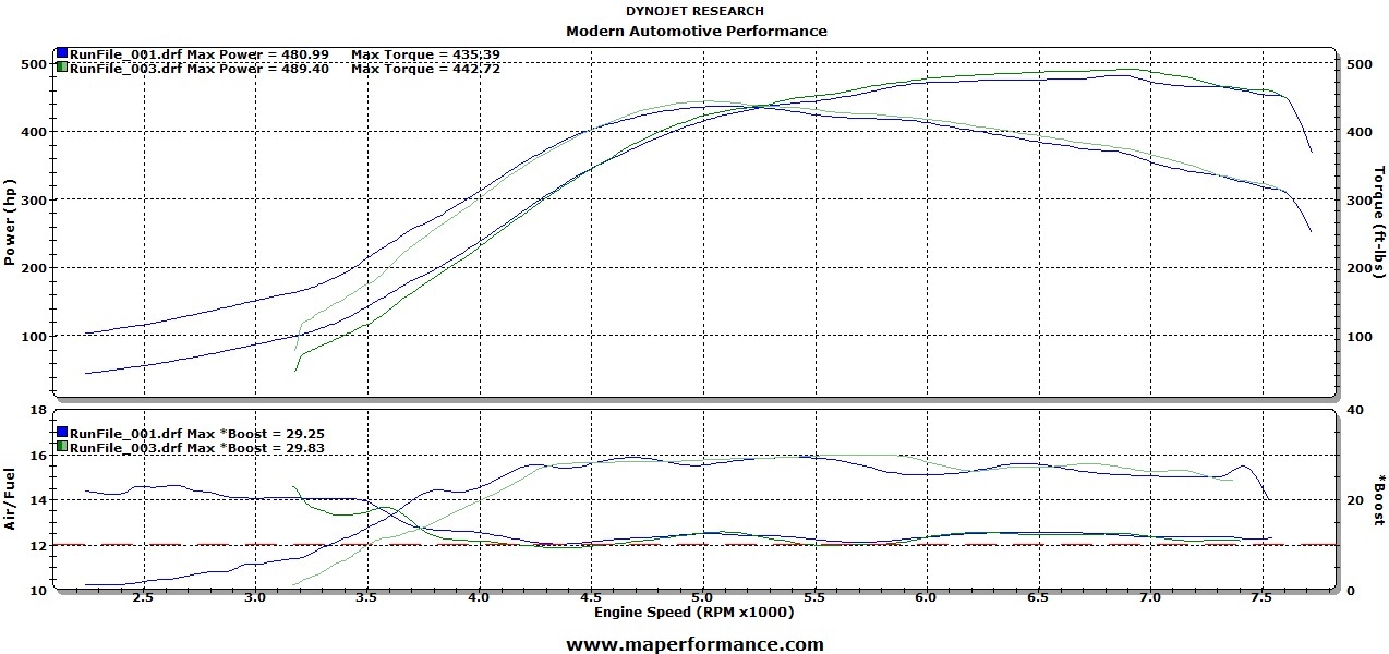 Nice that the plots were sent over. I know for the boost the dyno was showing WAY off due to the BOV line being picked up. John should add a dyno vacuum port somewhere on his car