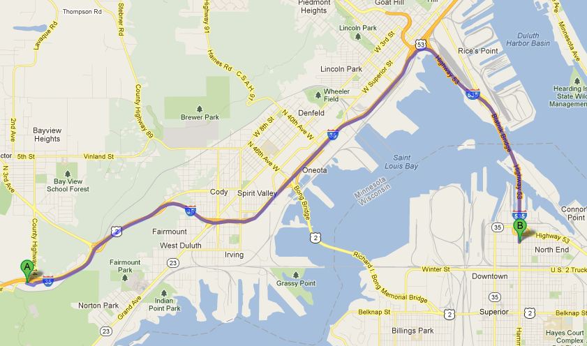 So far he hasn't found anything between the Twin Cities and Duluth so prepare yourselves to be able to go ~225 miles between fill-ups; I know this means some of you need to carry jugs with you, but a lot of the stations in WI that used to carry E85 no longer do.
