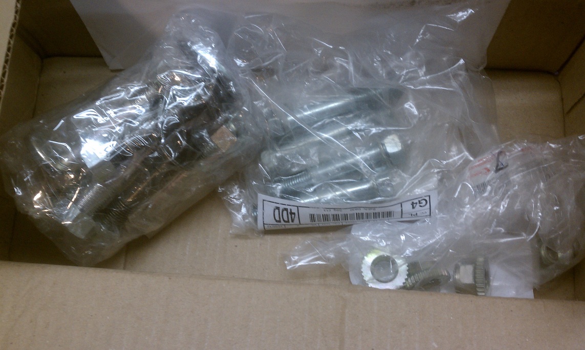 Got some new hardware in the mail today from Curt @ Elmhurst Toyota to replace some of the old rusty/crappy hardware. Any other hardware I need I'll either just clean up the old ones or go get new stuff from Ace Hardware.