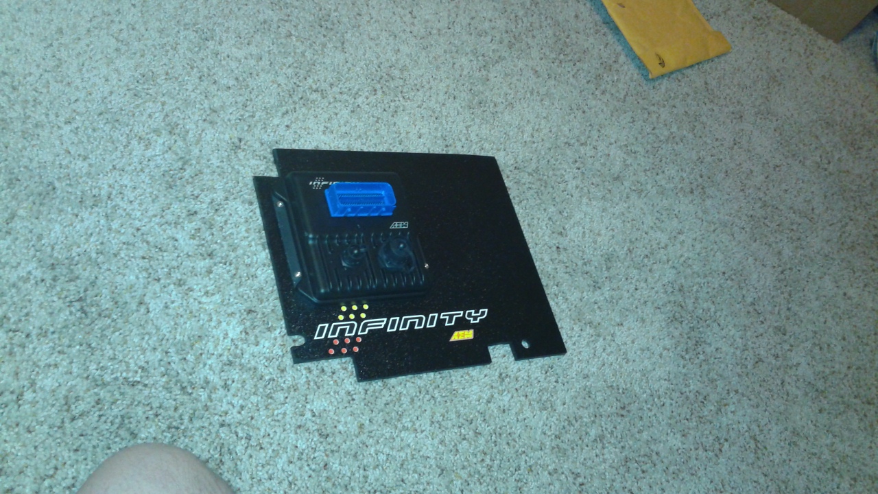 Some small updates here. I got the AEM mounting plate cleaned up at work a bit. As good as I care to get it. Pretty happy with how it turned out, considering it was just like a $8 chunk of plastic