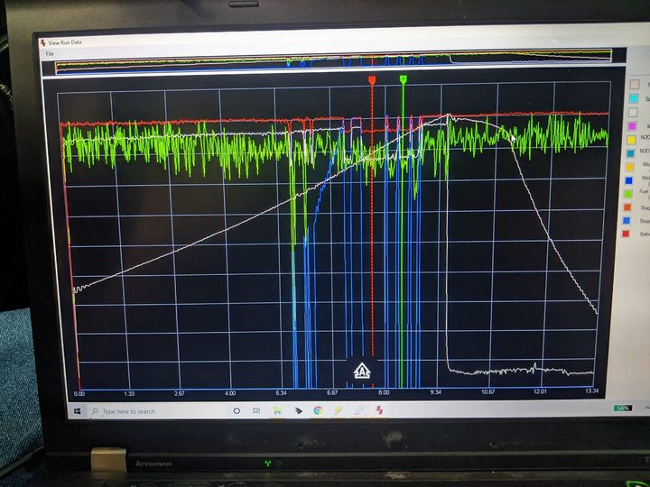 Hit it quick with a 100 shot, 561; had issues with the boost a pump (fixed now) so the power cycled as the nitrous nannies turned it on and off.