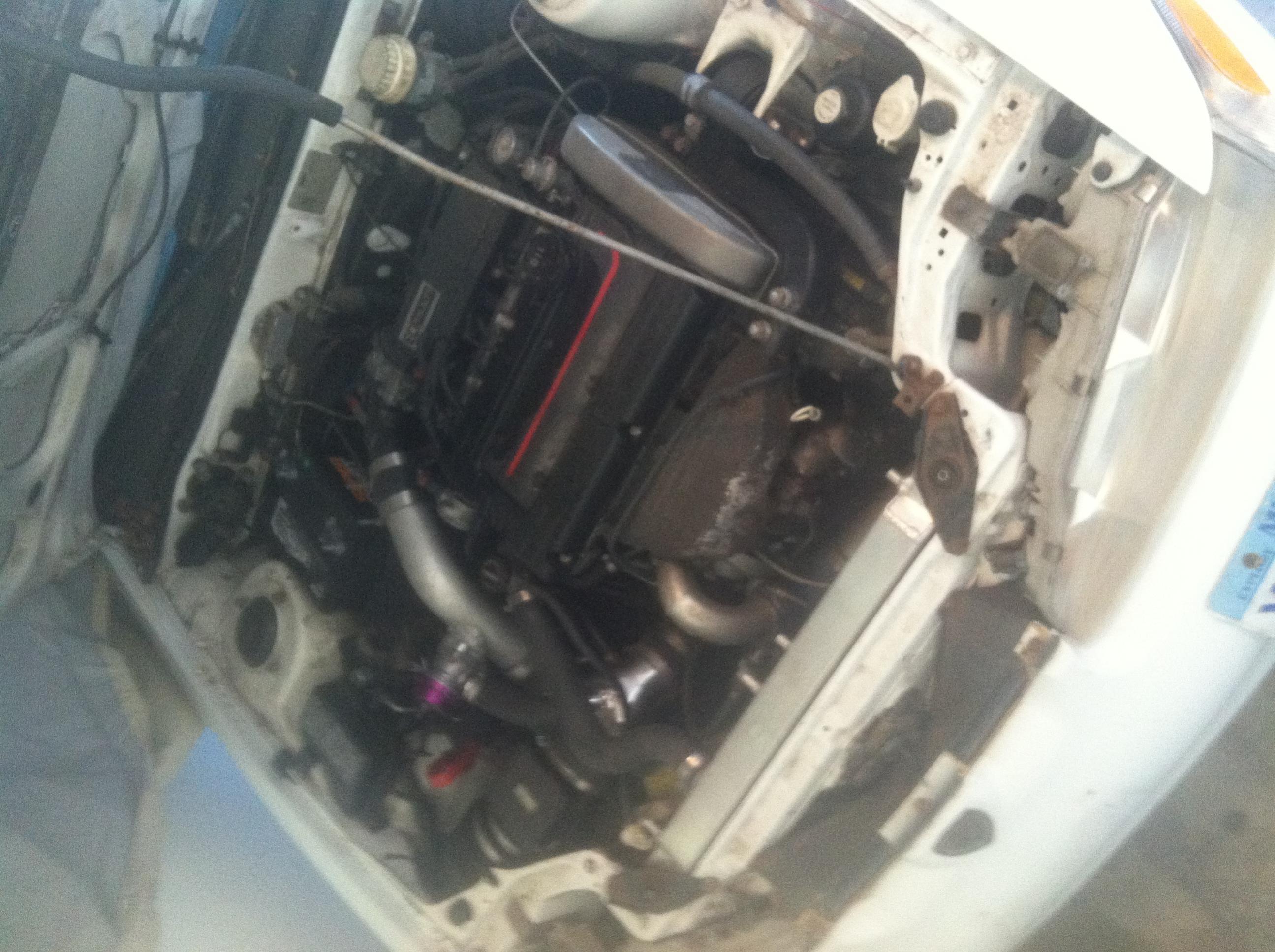 Car still runs and drives but we (4g63tcrazy) think it needs a new head because it still overheats after headgasket install. It has paint fading on the hood, a little hail damage on the roof, and rear bumber has a dent that was there when I bought the car. The windshield has a chip that turned into a crack. Driver front tire has a slow leak, and might have a bent rim, bouncy on the highway.