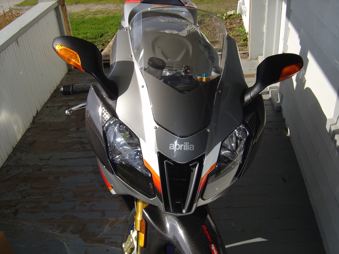 This is a buddy of mine's new bike. He rode a '98 or '99 GSX-R 750 for a couple of years, sold it about two months ago, and picked up his new Aprillia a couple weeks ago. He already has a Power Commander, rear set, and exhaust on order for it.