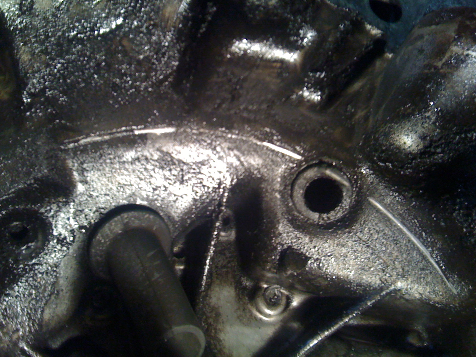 Today I had the time and the chance to tear apart my car and see what was going on and I found the problem with a surprise. There were 2/4 rubber parts on my disc that were completely gone and all over the inside of my tranny. My pressure plate was not tight to my flywheel with one bolt loose and scratching an arc in the inside wall of the tranny. And the surprise was this plug behind the flywheel that holds oil inside the block, whhich for some reason has not loosened but doesn't have a tight seal so it has been pissing oil inside my tranny and coated my disk and clutch in oil. I have pictures to show you what has been going on.