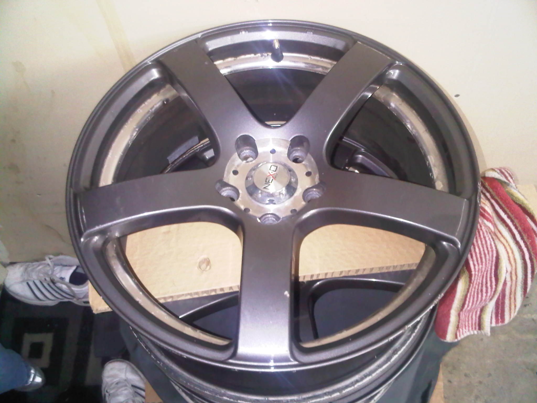 18" rims ( gunmetal ) ... light curb rash on some and some peeling on the inside. No bends. A good set to powder coat or just run as is. - $ 200.00