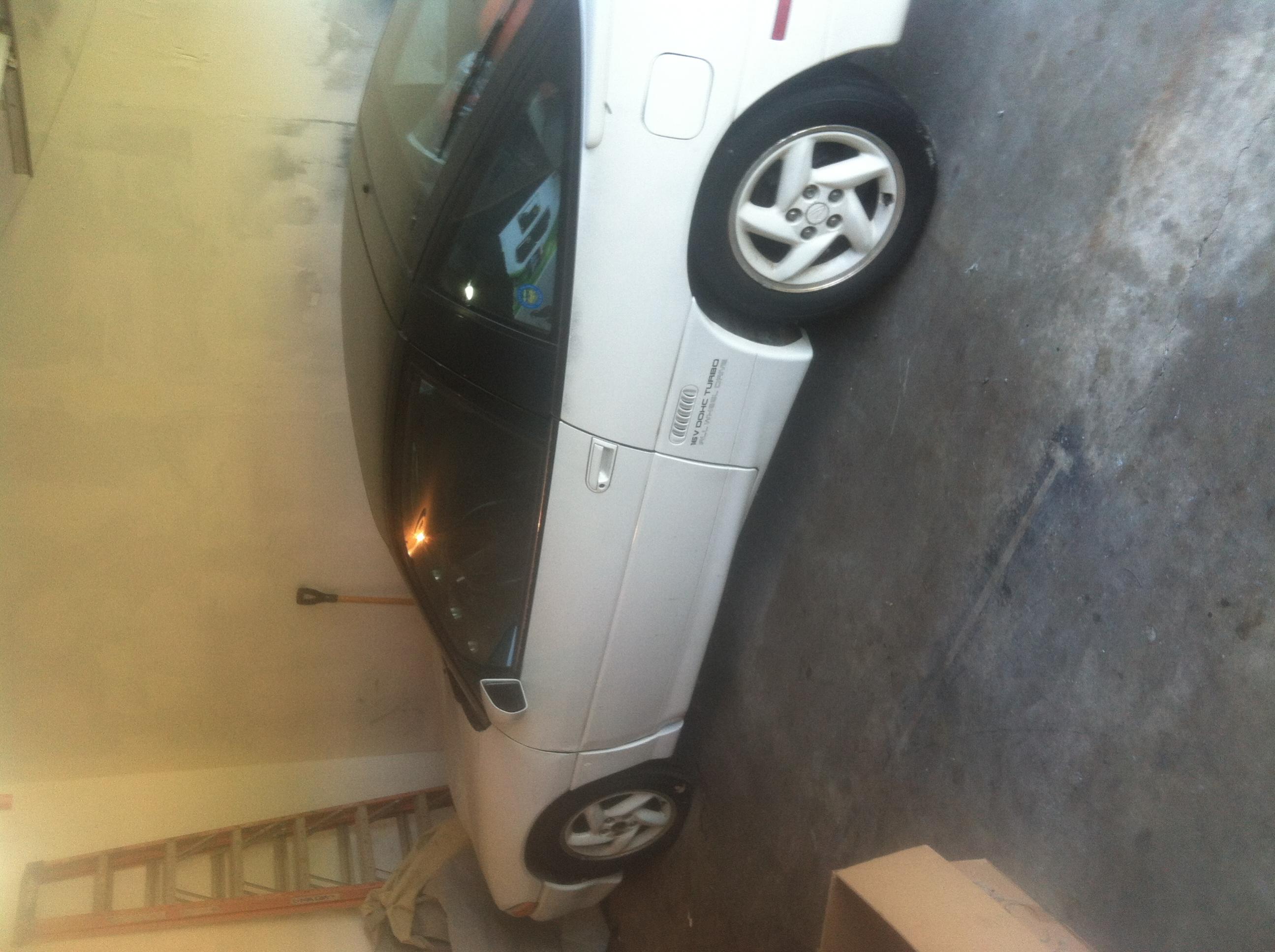 Car still runs and drives but we (4g63tcrazy) think it needs a new head because it still overheats after headgasket install. It has paint fading on the hood, a little hail damage on the roof, and rear bumber has a dent that was there when I bought the car. The windshield has a chip that turned into a crack. Driver front tire has a slow leak, and might have a bent rim, bouncy on the highway.