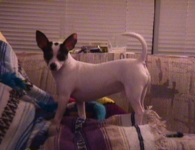 We are having fun with our new puppy. His name is Poncho (although we toyed with the names "Killer" or "Radar") and he's a Chihuahua/Rat Terrier mix. Has the stance of a Miniature Pinscer, but the for the most part he looks like a Rat Terrier in the nose.