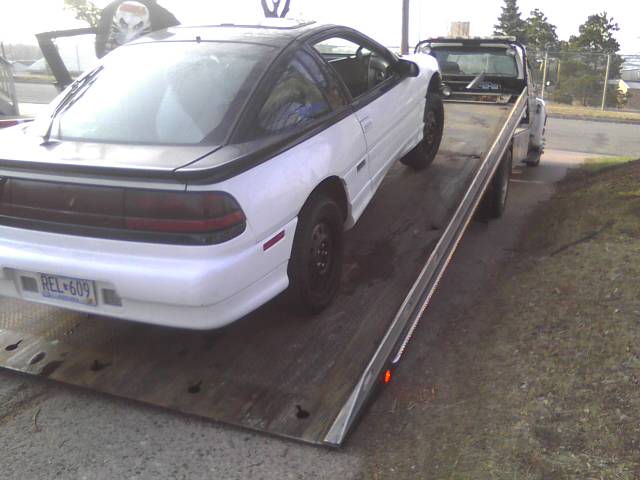 So I bought a used motor, a stock 4G63T from a 91 Laser FWD. Almost had to take the door off my temporary daily driver, to fit it in.