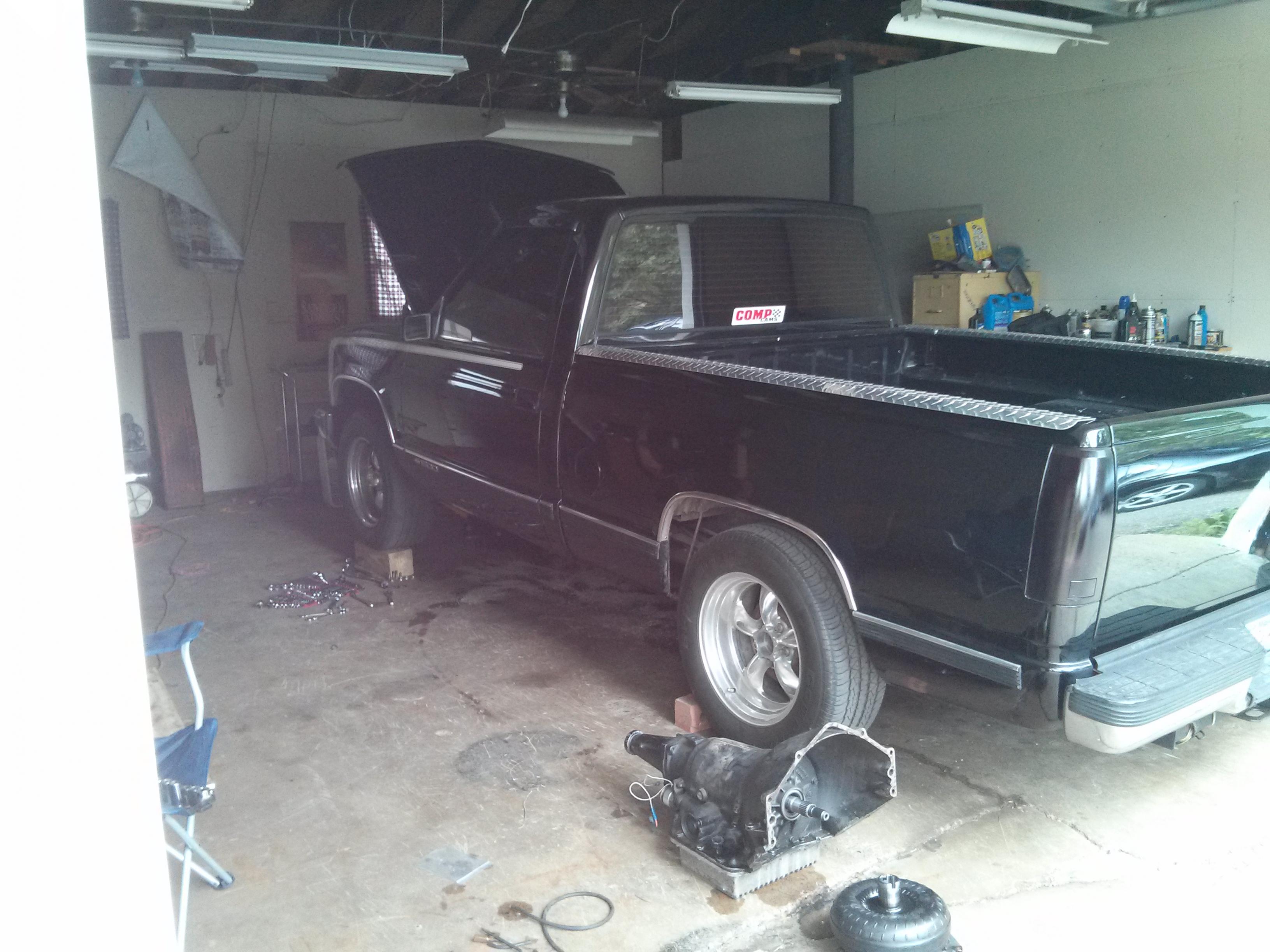 Well it only took a couple hours to get the transmission out. Now am looking for a place or person that can inspect the transmission before I order a new converter. Hopefully I will have it back together in a couple of weeks. If anybody knows of a good place/person that can inspect my transmission send me a pm. Here's a pic.