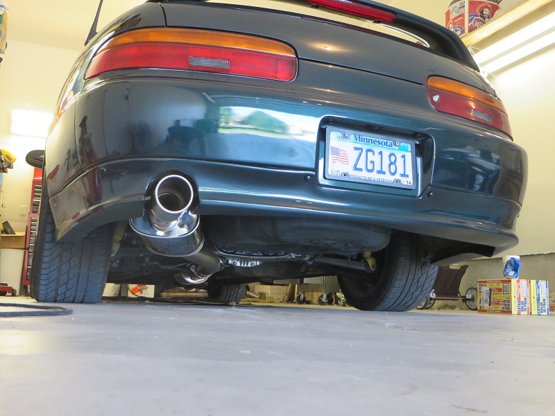 Just got the car back from DB. They buttoned up the rest of the exhaust. I was going for a subtle clean look, and as quiet as possible. They nailed it! So it's basically a 3" turbo back w/ a Vibrant Ultra Quiet resonator in the middle, and a Vibrant Oval Muffler in the rear, with a 4" rounded edge/angle cut tip. The sound is louder than stock but still very quiet. On the highway with the windows down I don't even hear it. Thanks again guys!