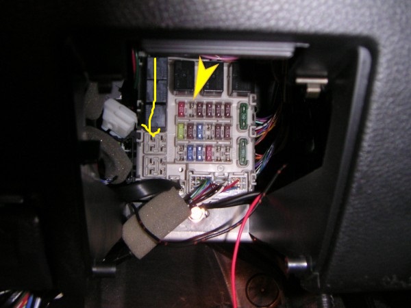 Its right THERE. LOOK STRAIGHT UP FROM THE WORD FUSE. See that little yellow thing? Thats the black, add-on fuse block.