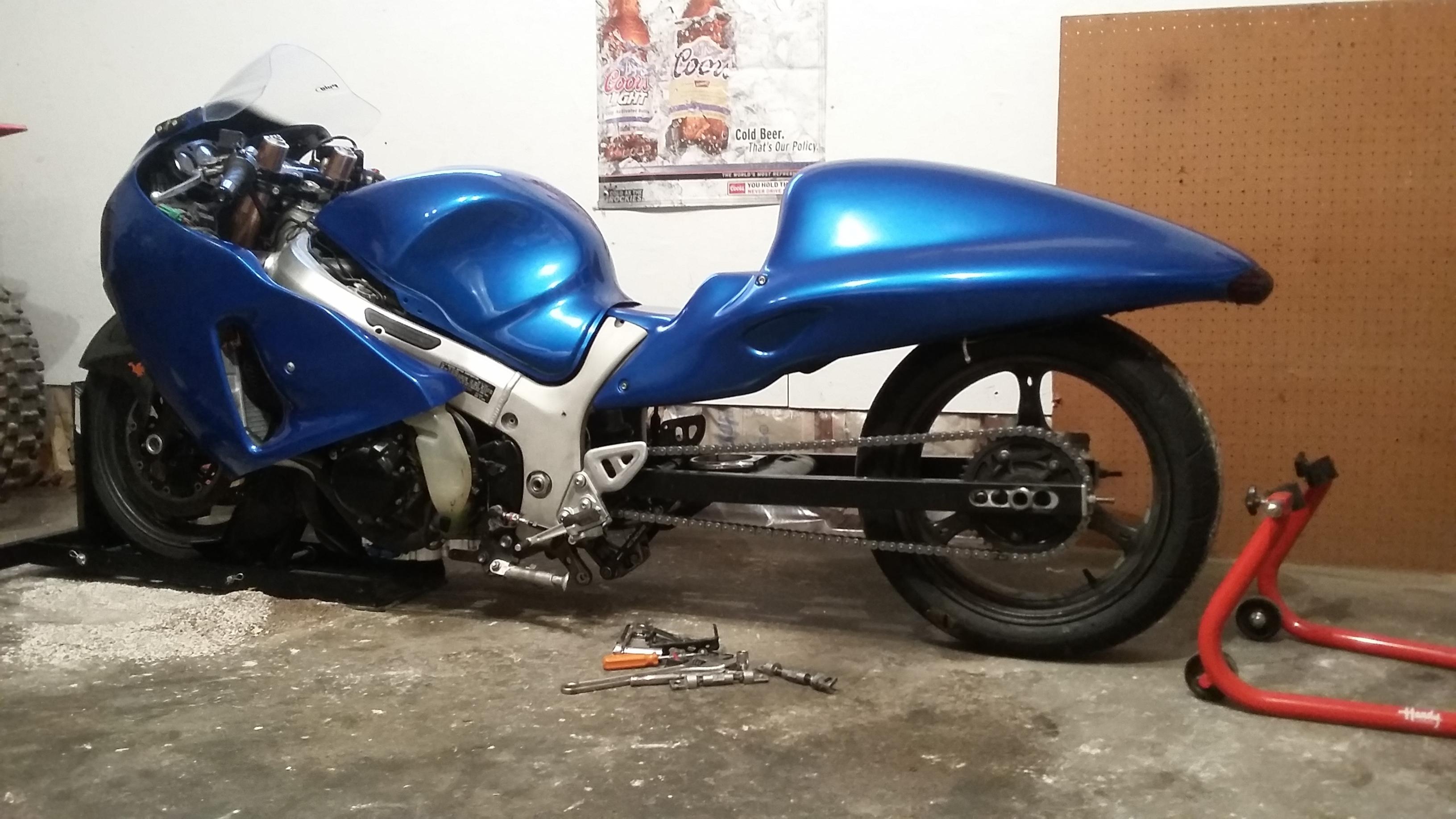 This weekend I took my forks off to have them internally lowered 2.5 inches. Waiting to get those back this week. I ordered a lowering front fender to go with my new low pro front tire. Couple more weeks and it ready for its first pass.