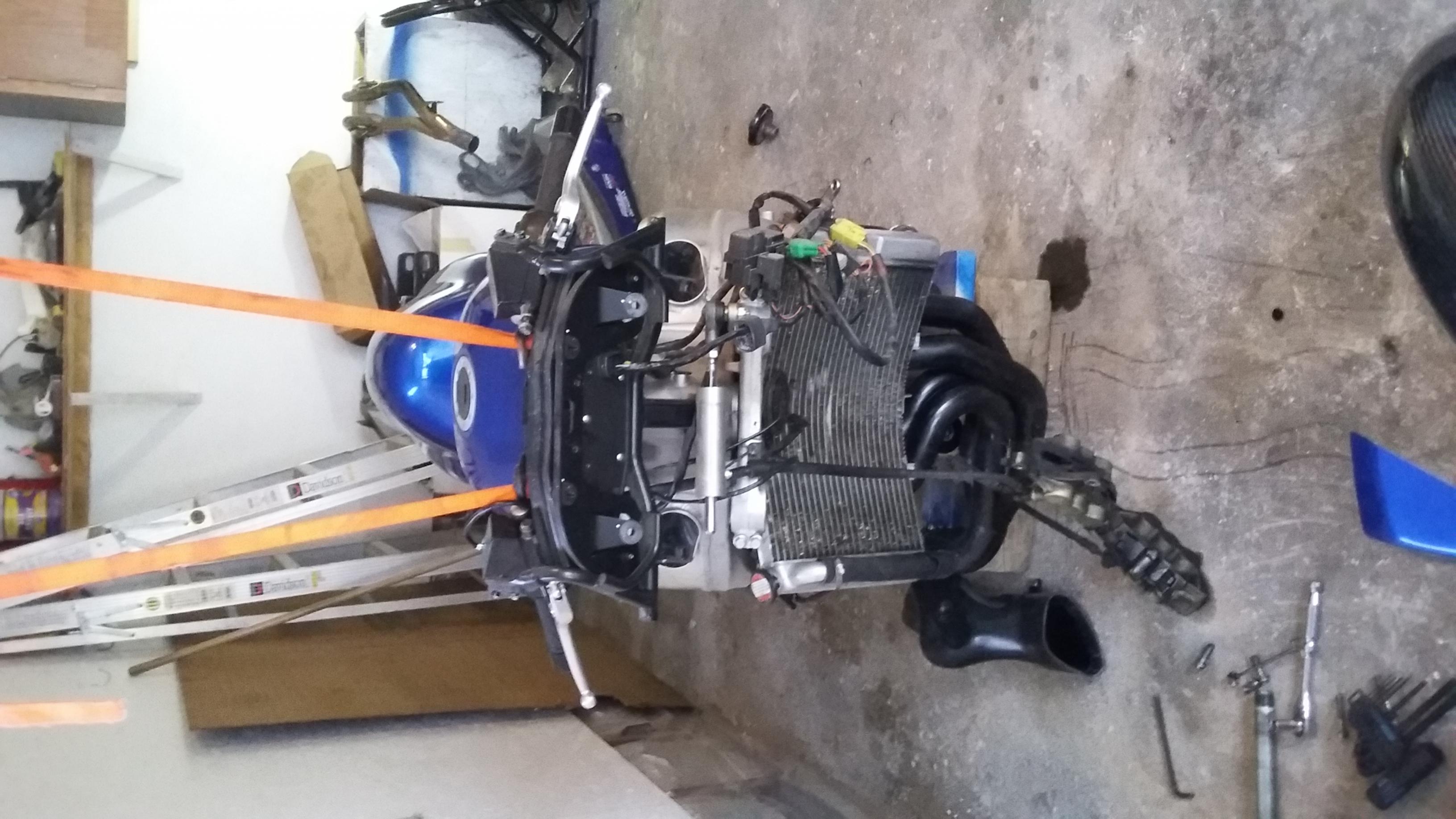 Installed my forks and yea they are a little short. I don't have enough room for a fender to fit so iam not running a front fender. Hahaha. I rode the bike this weekend and it rides good but can't take any corners. The exhaust hits and the kick stand hits. So iam going to raise the rear up to give me more clearance. I also lightened up the front upper fairing stay. Try to cut as much weight as I can on the bike. I want to get it close to the liter bike weight.