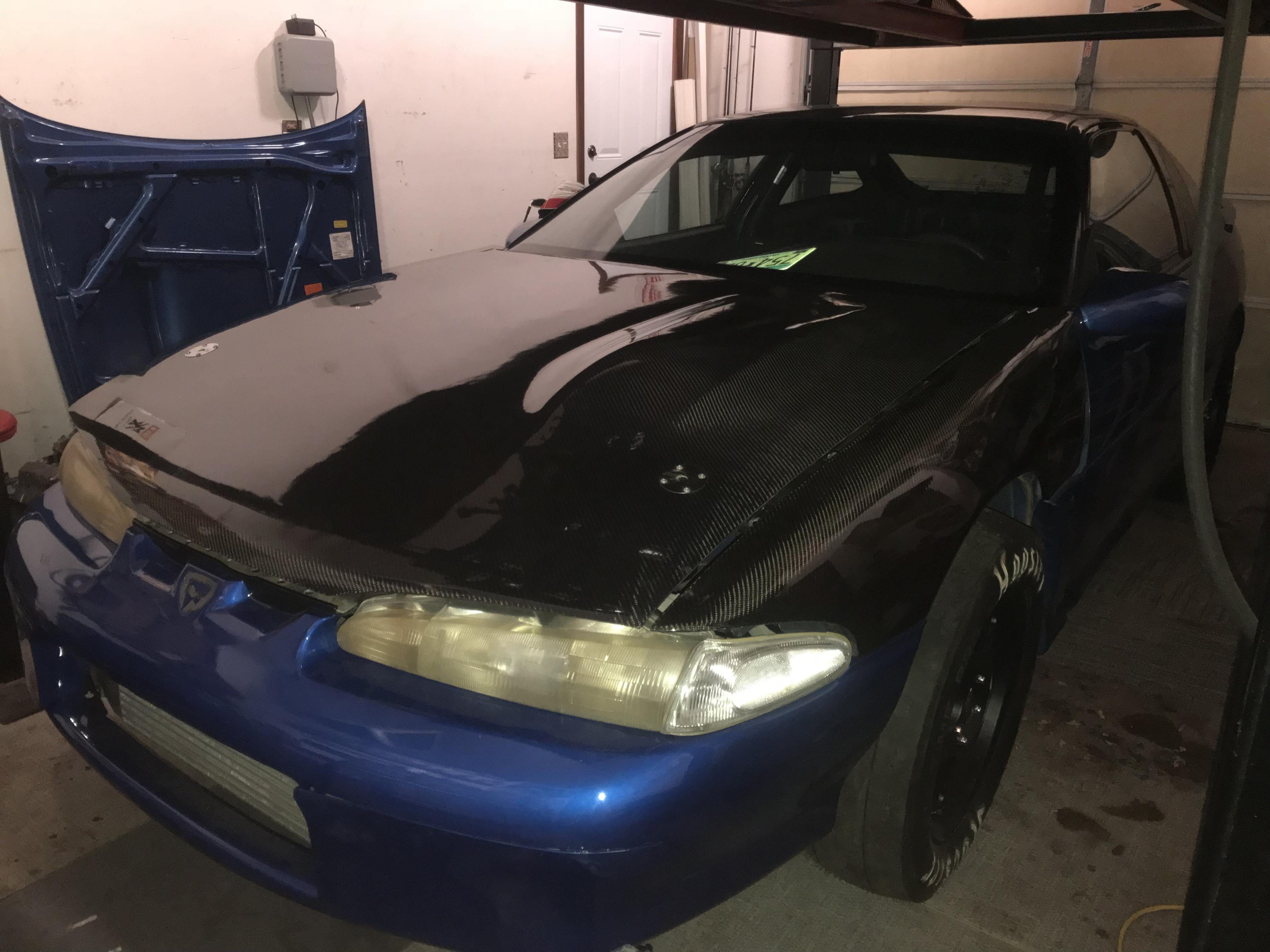 Carbon fiber fenders and hood mounted up. I have to say this color blue and carbon fiber looks so good
