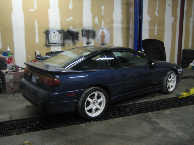 Well, I finally got to take her out for a quick spin this morning. I've got a few things to take care of like a working 02 sensor for fuel tuning and welding a new bung for the wideband, but it actually drove pretty well. It was spooky how quiet it is now with the full interior back in and the dynamat, plus power steering and heat will take some getting used to. Once I get it running right, I can put it in storage and bring it back when I get time to put in a real stereo system and move on to my next big project, 3000 GT VR-4 or EVO brakes.