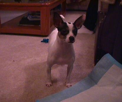 We are having fun with our new puppy. His name is Poncho (although we toyed with the names "Killer" or "Radar") and he's a Chihuahua/Rat Terrier mix. Has the stance of a Miniature Pinscer, but the for the most part he looks like a Rat Terrier in the nose.