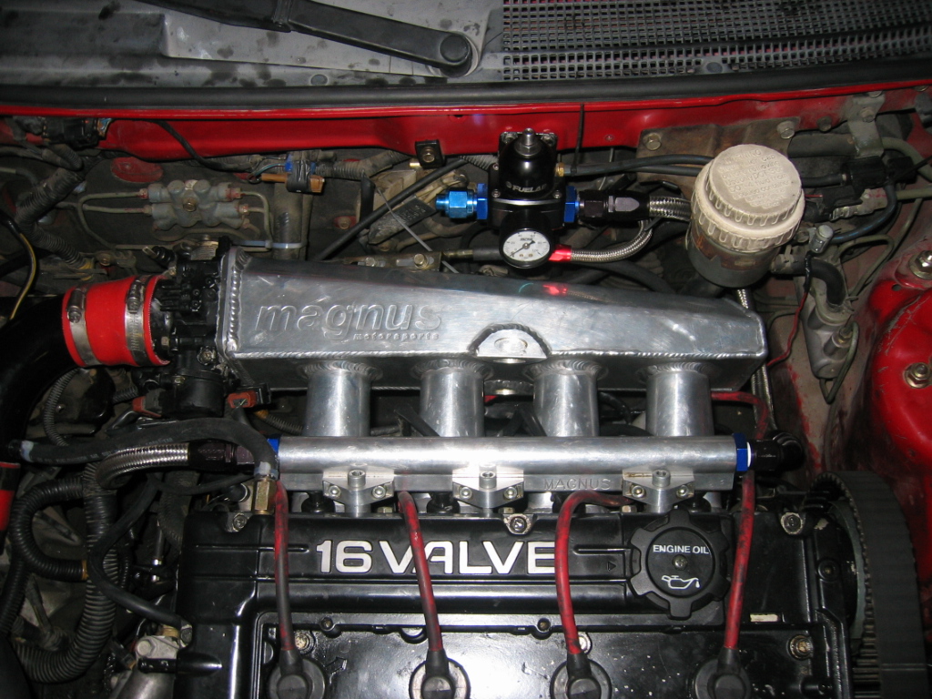 Just curious, but at idle, dos your magnus make it sound like your car has a huge vaccuum leak? I've got one on my 1g and it makes a high pitch whisteling sound, but I don't have any leaks.