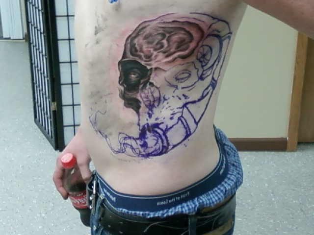 so I just finally got my tattoo finished. it's been a work in progress for a couple months. It took a total of 3 visits and 5 hours of work to get it done. a big thanks to the ink tailor adam chiodo for the awsome work. sorry they aren't the best pics they're off my phone