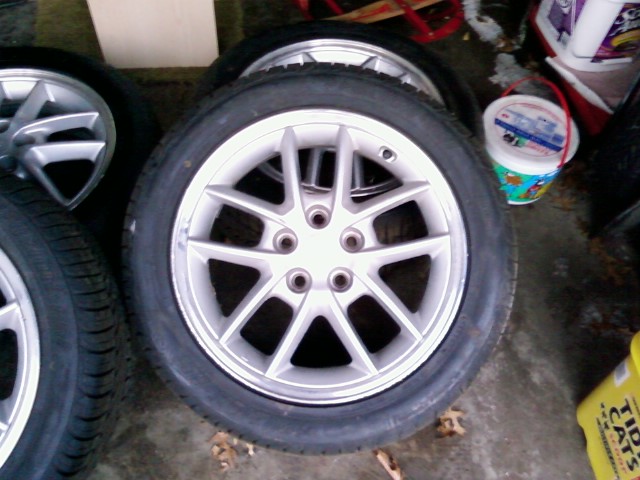 just picked up some new wheels. they are off of a 98gsx with almost brand new tires. I think I going to paint them or have them powdercoated black but I'm not sure yet