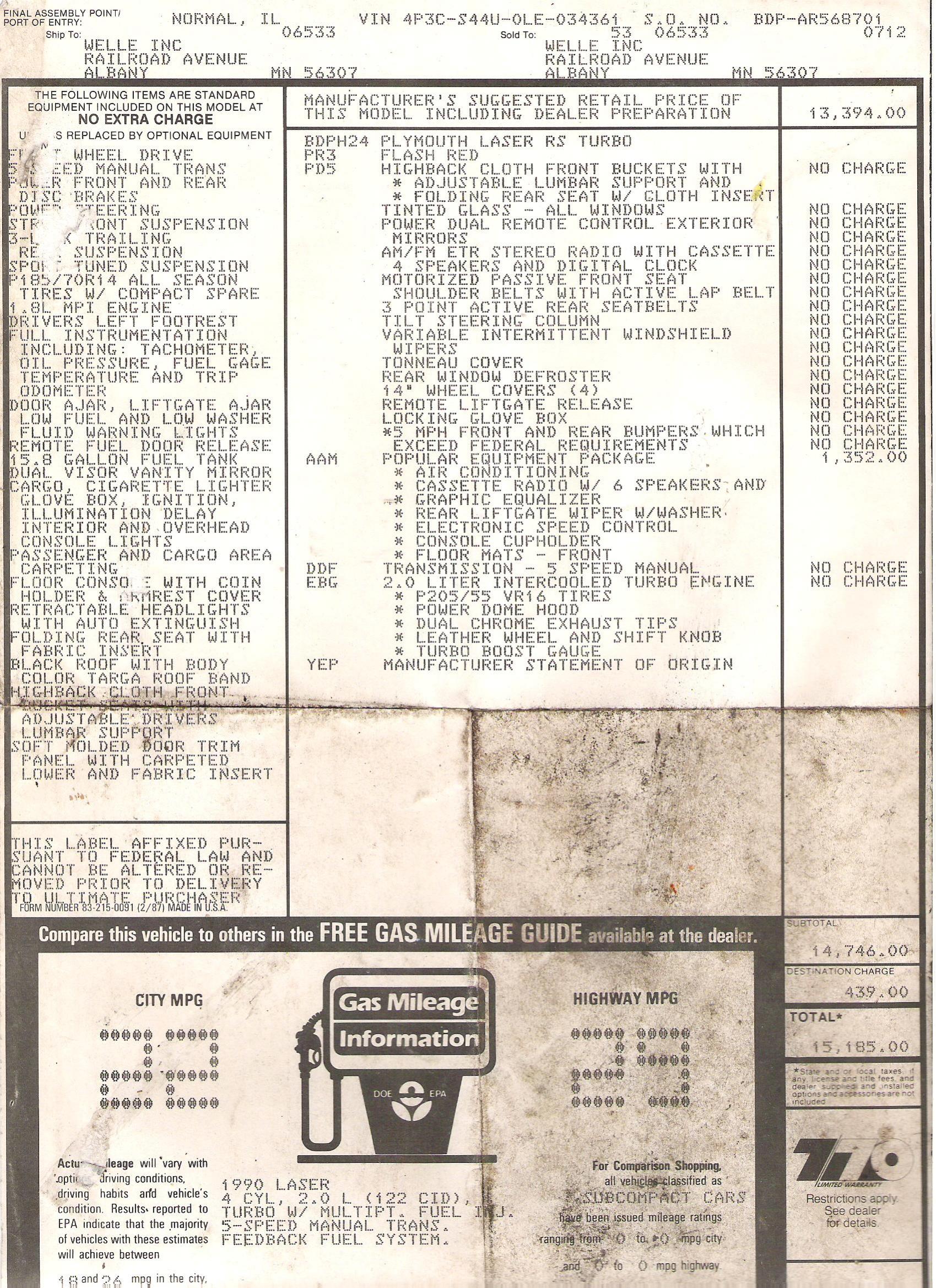 Lucky bastard! I wish I had the original window sticker from my car..