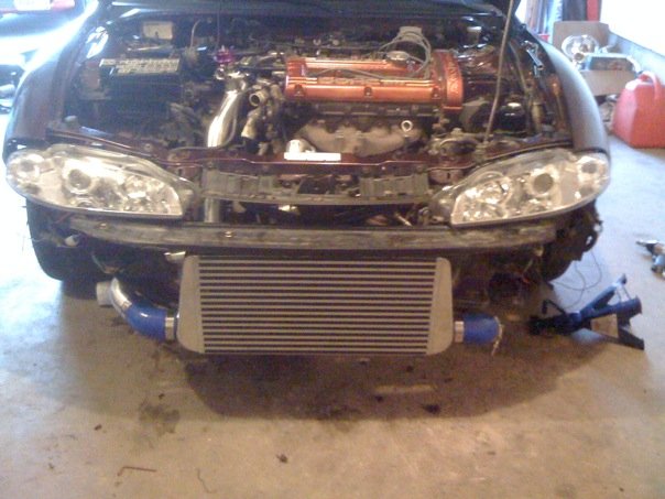 My 2cents on the kit: It was the one of the cheapest kits on ebay that wasnt a universal. It came with all needed hardware to install including Jpipe, aftermarket throttlebody elbow, bov pipe, and a pretapped nibble pipe for a boost/vacuum source. The kit says that it requires cutting of the pipes but we found that untrue. Once we figured out where each pipe went we didnt need to cut any of them. All the pipes were beaded on the ends so that a huge plus in my book. We had 45* pipe left, 2 couplers, and a bunch of t bolt clamps, left over. from the looks of it those extra pipes are there in case you have a t25 or t28 and the kit still bolts up to those. So im impressed that the people puting the kit together covered all there bases and included everything in the kit. Anoter nice thing is it came with a free BOV. Its a knock of so its only temporary, but its nice because when you get rid of the stock piping on a 2g you dont have a bov to use so this will hold you over till you can buy one. I took a jigsaw and cut the crashbeam so it was just the top piece and mounted the intercooler straight to that. It allowed everything to install securely, easy, and even. I thought the kit was very well made and put together. Very convenient because it had exactly everything you needed gaskets included. two thumbs up in my book.
