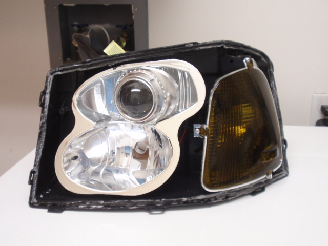 Got the projectors in the mail today. I was really hoping they were going to just fit right in without modification as that's what these projectors are meant to do. Problem is the size of the projector, and the size/shape of my OEM reflector bowl. They don't perfectly work together so some modification was required. I decided I wanted to try and keep the housing as unmodified as possible. I did have to grind away a very small spot, but it's somewhere that'll never be visible so no biggie. Had to cut away a couple spots on the projector bezel, or whatever the name is for the decorative outside piece. It was hitting the OEM housing in a couple spots, which is why I had to modify them. But I think those couple little mods pretty much took care of it all. I only did 1 for now, will do the other one someday soon. I don't think I'm going to completely seal the headlights back up though until maybe April which is when I'll be back home and will have the Balast kit.