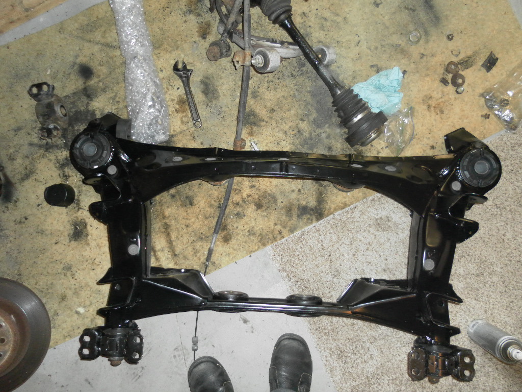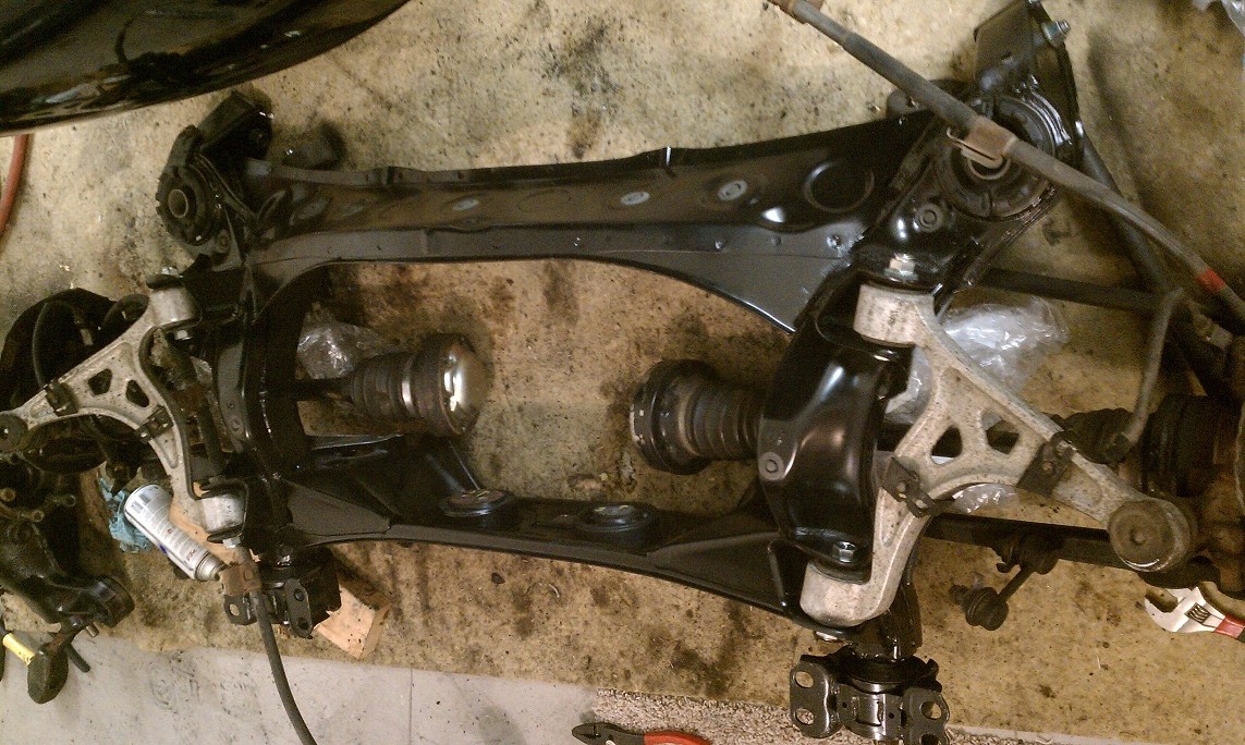 Got the rear subframe back from Powder Keg where it was coated semi-gloss black. Goal was to keep it clean/oem looking, and look good as new. Turned out perfect, thanks Tim!