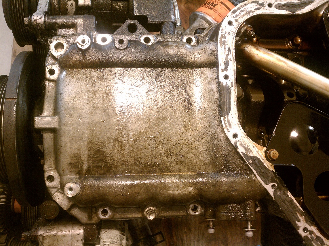 Think I found my mysterious oil leak. Shouldn't there be more than 1 bolt holding the upper oil pan on?