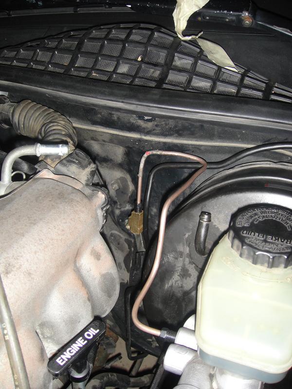 The line from the bottom of the Tee, coming down then bent right under the brake booster, then bent straight again to continue going towards the front of the car