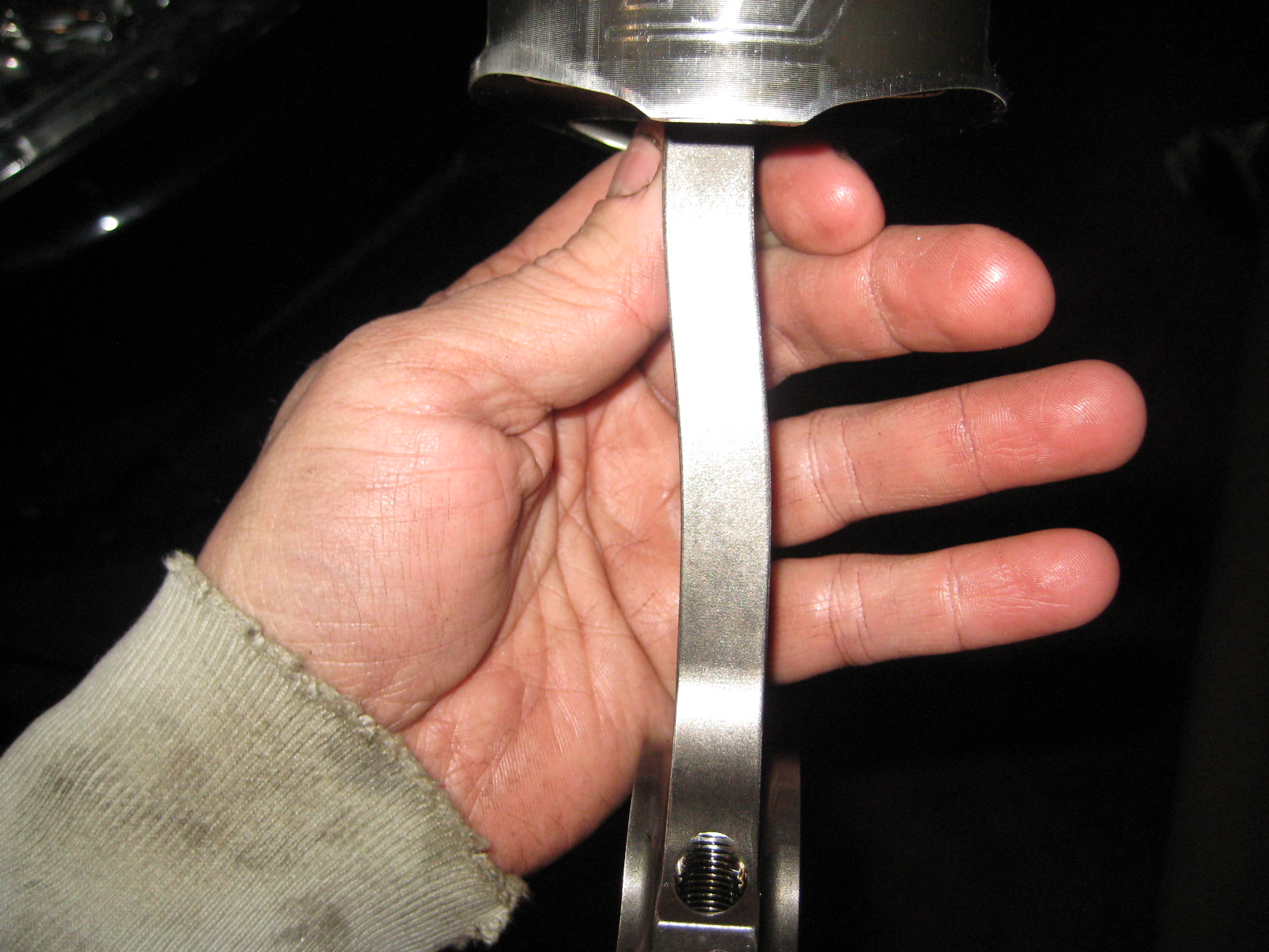 A little backround on the car, some of you might know about it since it's a local car. It's black with 75k miles, built 2.3 stroker, built head, FP Red, ACT clutch, blah blah. Nice shape overall and I'm very happy with it. But I bought it knowing it needed a headgasket. I was hoping that's all it was and I'd have it at DB on Saturday, but my luck dictates that it's never that simple. I pulled the head tonight and found this. Obviously the head is trashed and needs to be replaced, which sucks since it's got stainless valves and upgraded dual springs. The block has a bit of damage as well but is still useable as is.