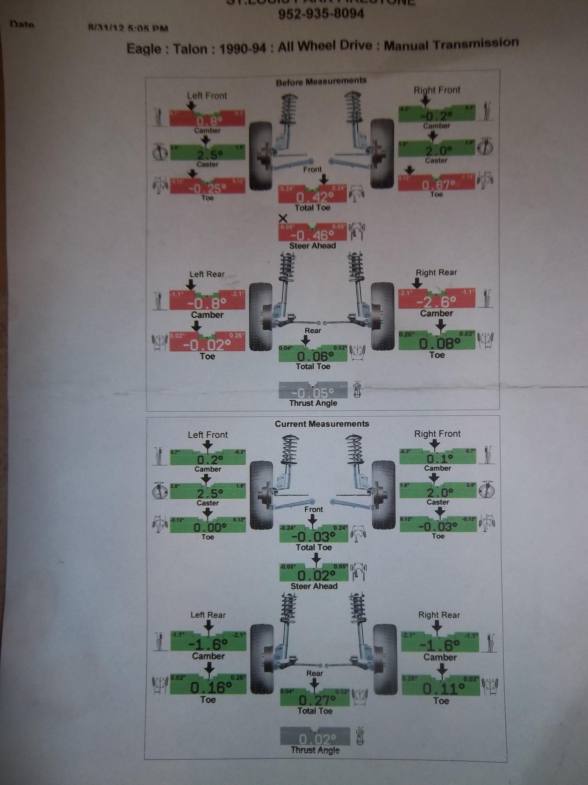 Alignment print-off, handles great now, all the eccentric bolts turned like butter.