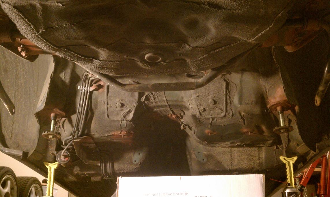 Also, started on the small amount of rust spots under the car. Basically just bought a sanding pad and sanded down the areas with rust. Then hit them with some Rustoleum rust inhibitor primer, and will follow it up with some Rustoleum black enamel. Hopefully that'll help reduce any rusting under there. But again was pretty happy with how little there was.