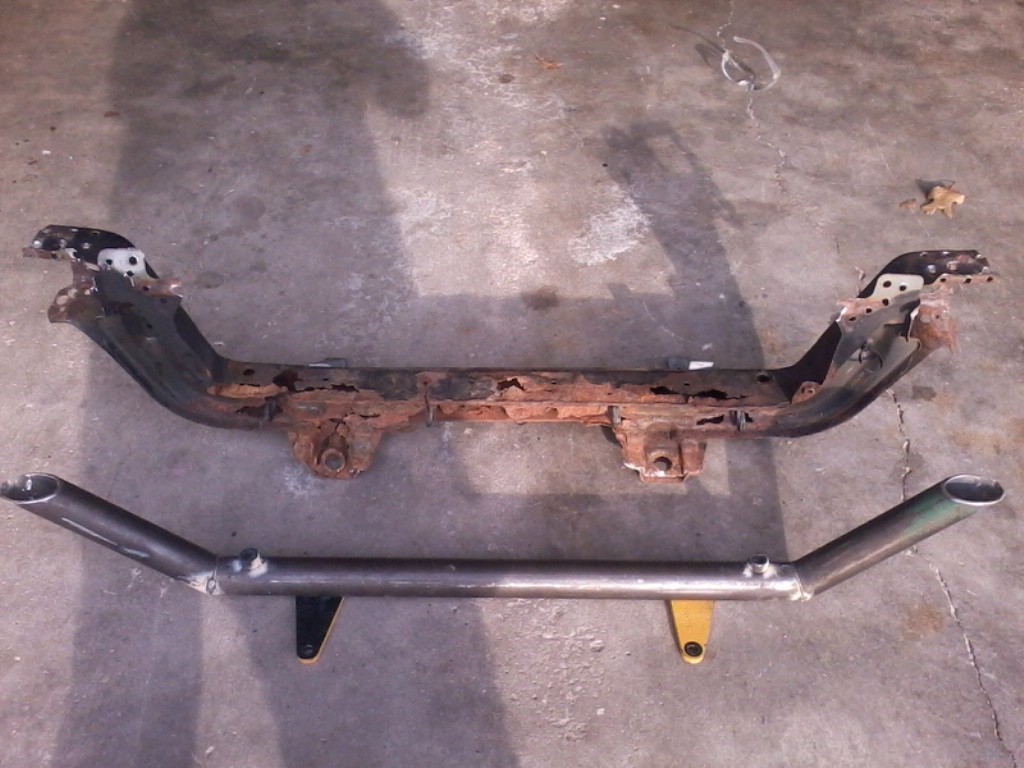 I tacked up the tubular core suport today. I made the lower radiator mounts from some lifting hooks we take off of engines at work and made some mounts for the a/c condensor. I am going to bring it to my Dads to weld it up with his MIG and drill the holes that will mount the North/South crossmember that runs under the motor/trans. Im not sure what I am going to do for FMIC mounts since I plan on upgradeing my Intercooler before spring.