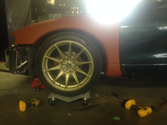 And this is what the car was sitting like when i was working on getting some 2ga's headlights and shaving the front bumper