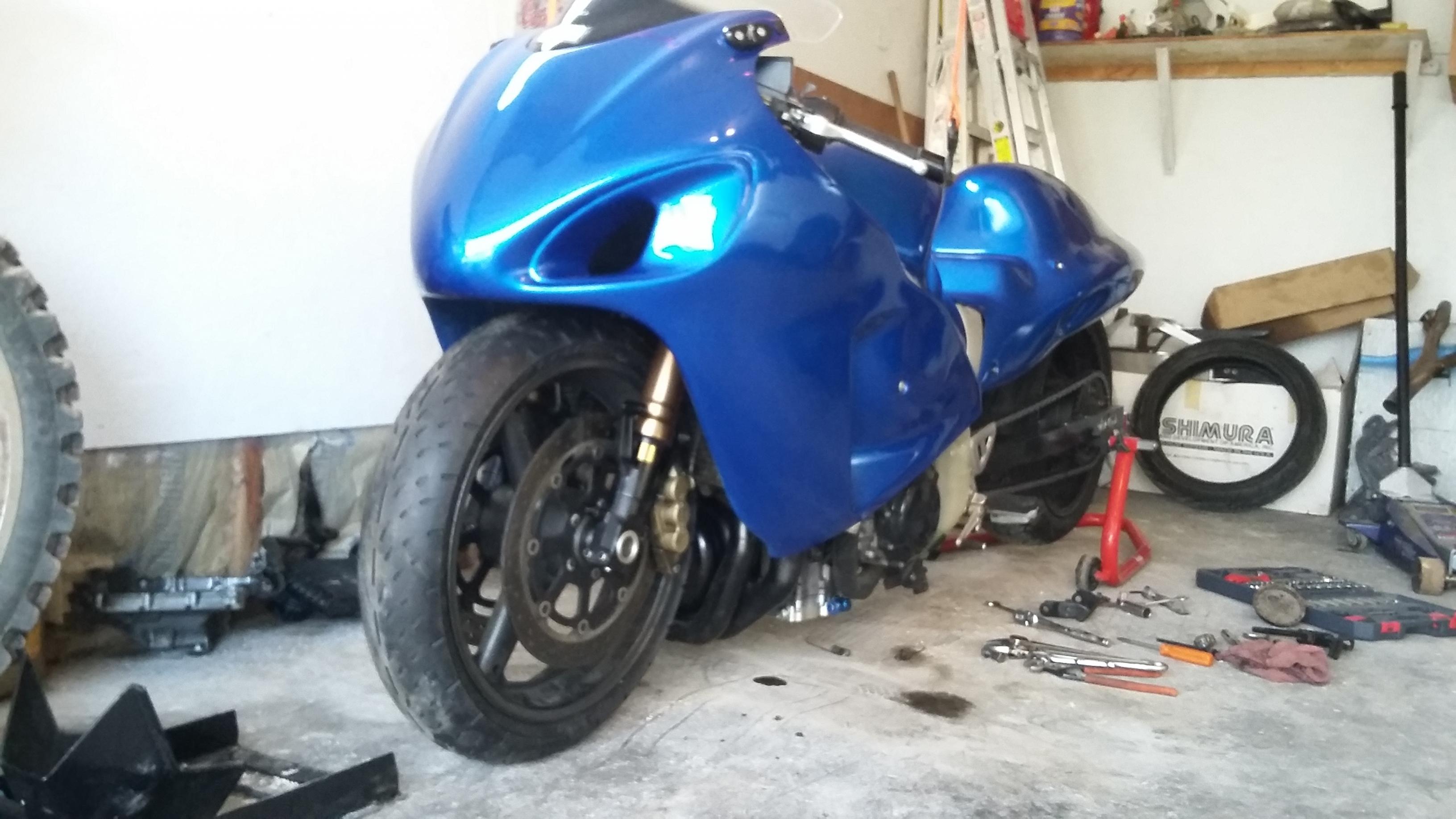 This weekend I took my forks off to have them internally lowered 2.5 inches. Waiting to get those back this week. I ordered a lowering front fender to go with my new low pro front tire. Couple more weeks and it ready for its first pass.