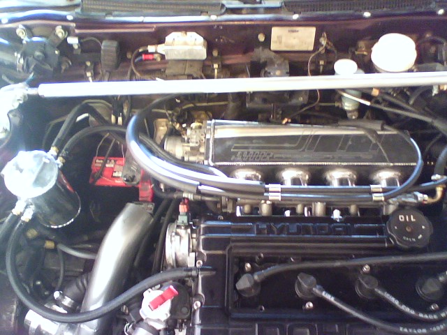 I don't have a camera right now, so here's just a crappy cell phone picture of what I've been up to today. I got the stock IM off, and put in the JMF one. Good thing I have skinney arms, because it was tricky getting that stocker off with the head still on the car.