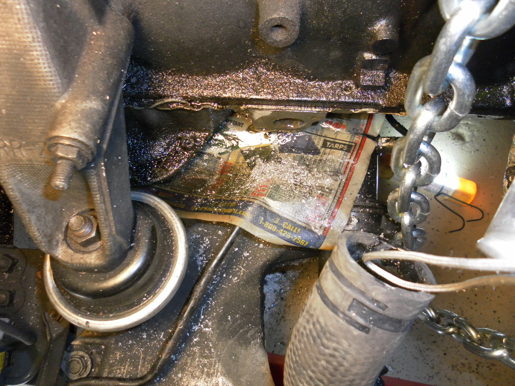 I dropped the lower oil pan and put that newspaper that you see in the pics there to catch the shavings. Apparently some people do it without dropping the pan at all. I didn't want to risk that so that's why I dropped the lower pan so I could catch the shavings on that newspaper.