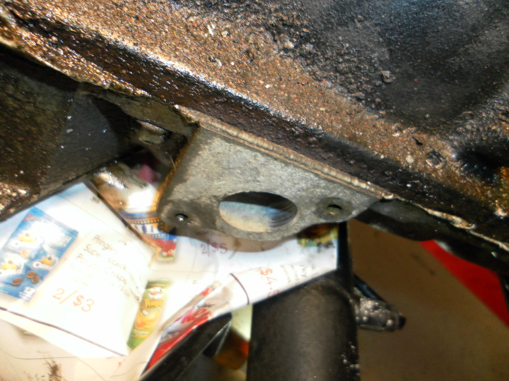 Didn't get a whole lot done. What I discovered is it appears to be impossible to completely remove the lower oil pan without either removing the engine, or removing this big arse cross-member. I needed about another 1/4" but couldn't jack the motor up any further to get that extra little bit. Oh well.