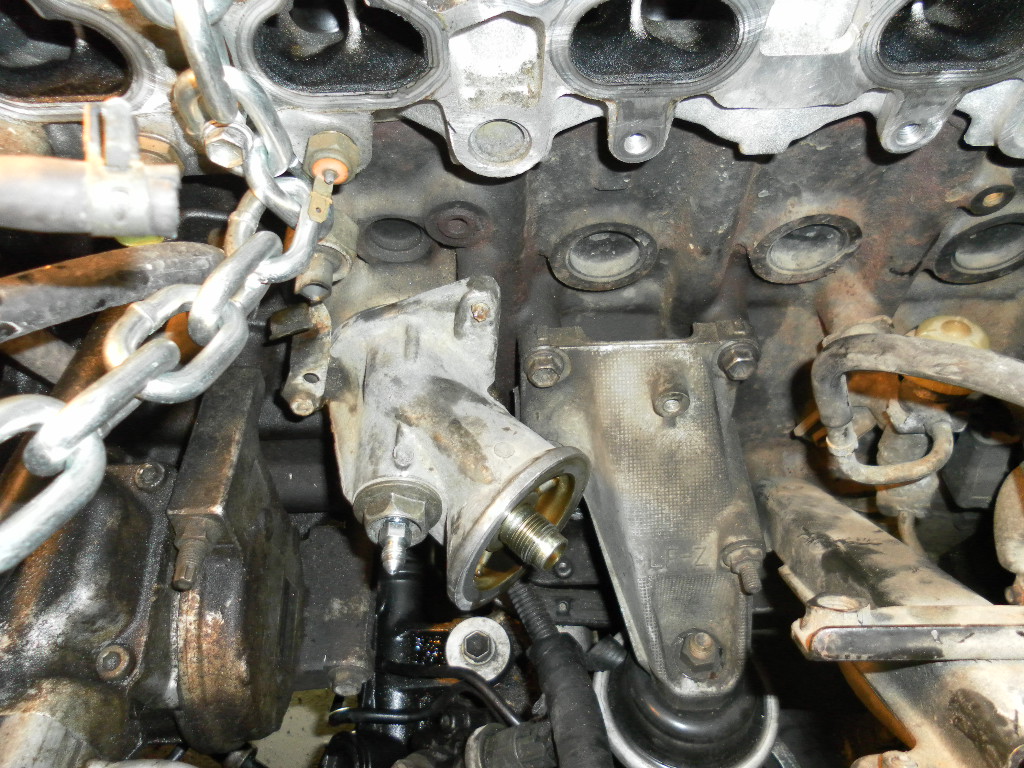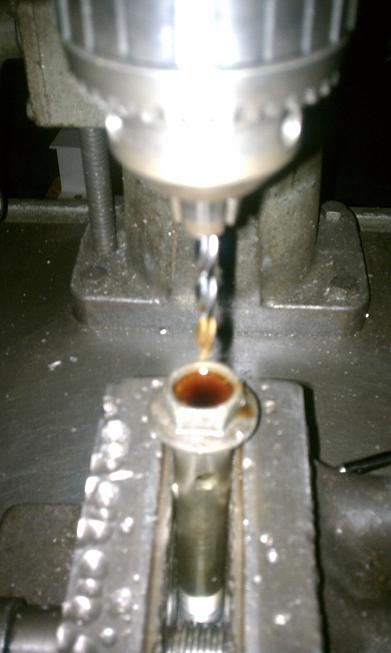Drilled the oil filter union bolt to accept a 1/8npt fitting for my oil feed. You can either buy one for an IS300 for like $25 and it's already tapped, or just drill the stocker. And well, considering I already had a 1/8npt tap, and access to free drill bits and a drill press, that was an easy choice