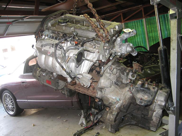 I got the motor out, transmission off, and the 2g starter plate off and ready to be put on the new motor. Also got the engine bay cleaned up a lot - one more wipe over and it should be ready to go.