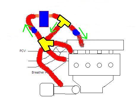 Or if you're poor like me and can only afford a standard two port catch can and two check valves...