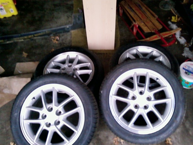 just picked up some new wheels. they are off of a 98gsx with almost brand new tires. I think I going to paint them or have them powdercoated black but I'm not sure yet