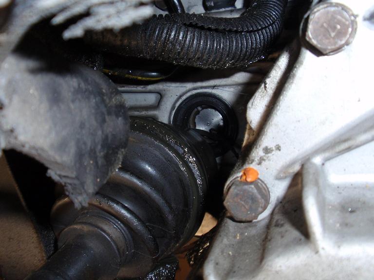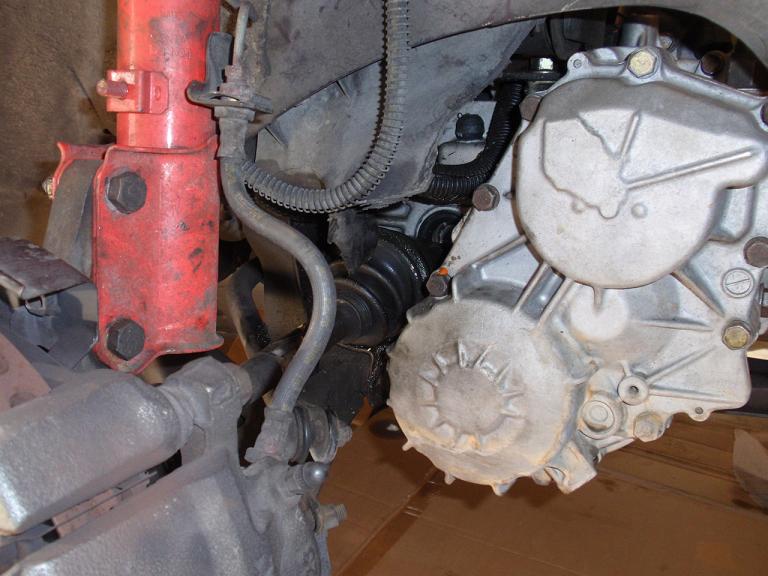 - I mentioned earlier that from under the car the pass axle looked goofy. Well today I got the wheel off and yeah that pass side axle is fubar'd. I didn't look at that close as today I was focusing on the head, not the tranny. Tomorrow I should get a better look at it though. All I can say right now is that I'm definately going to need a new pass side axle.
