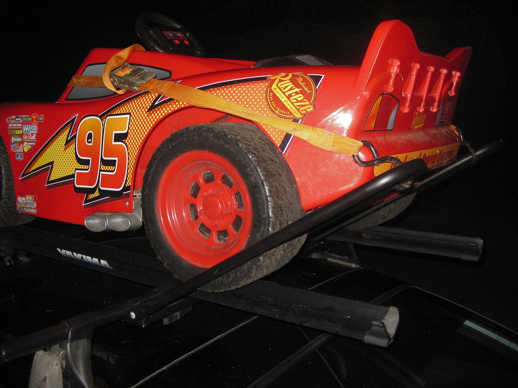 I've modified it a little to be able to transport my boy's modified Lightning Mcqueen power wheels around (I may start a project tread just for that, lol). Now I can take him anywhere now with his car pretty easily. Only takes about 5 minutes to mount and strap it down, this thing is mounted SOLID.