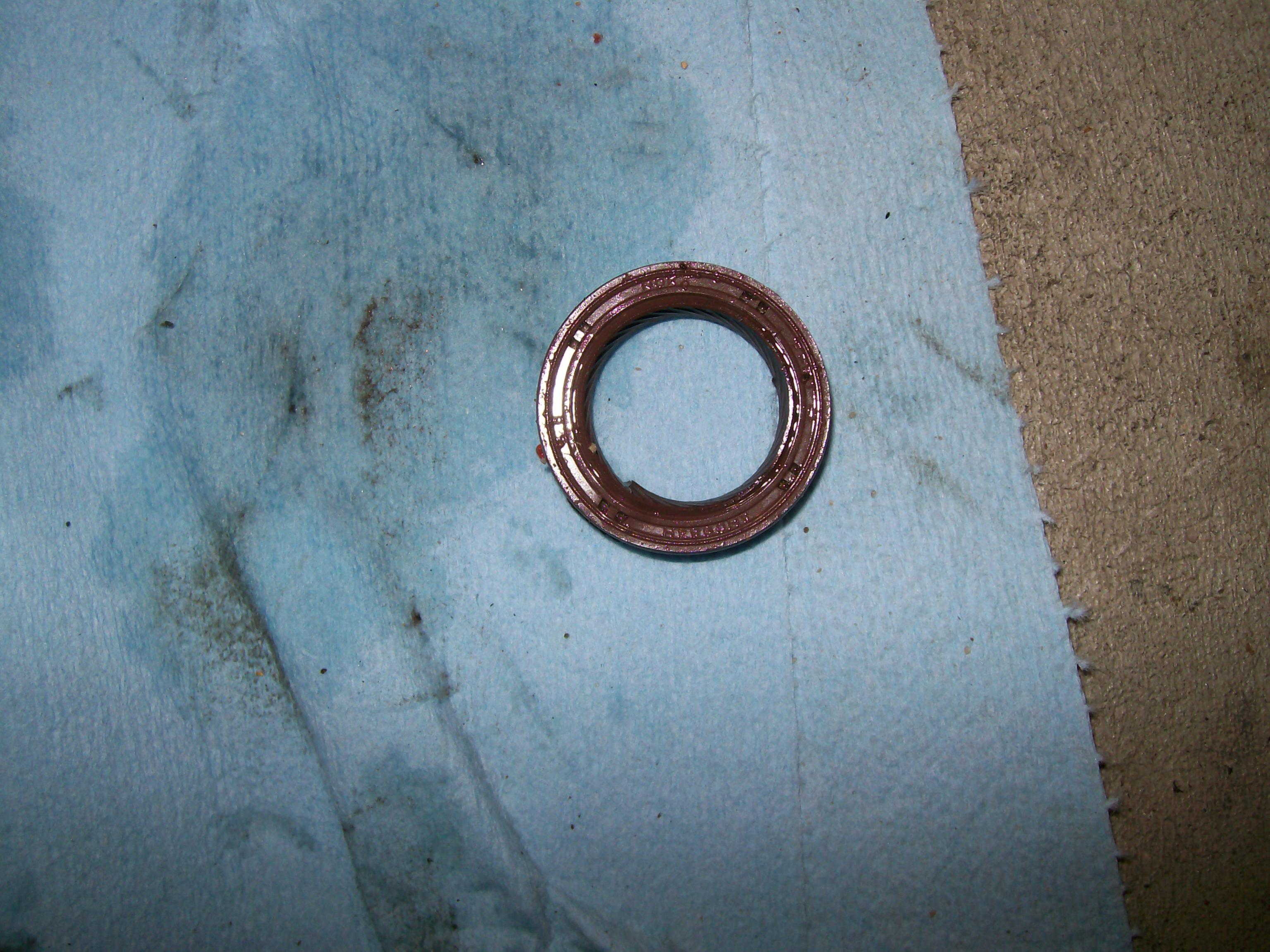 Here are the pics of the front of the cover. And the pic of the brown seal is the original seal. I replaced it yesterday with a black one that I had laying around (new) to see if it still leaked. That was before I took the pump off the block to find that it was messed up.