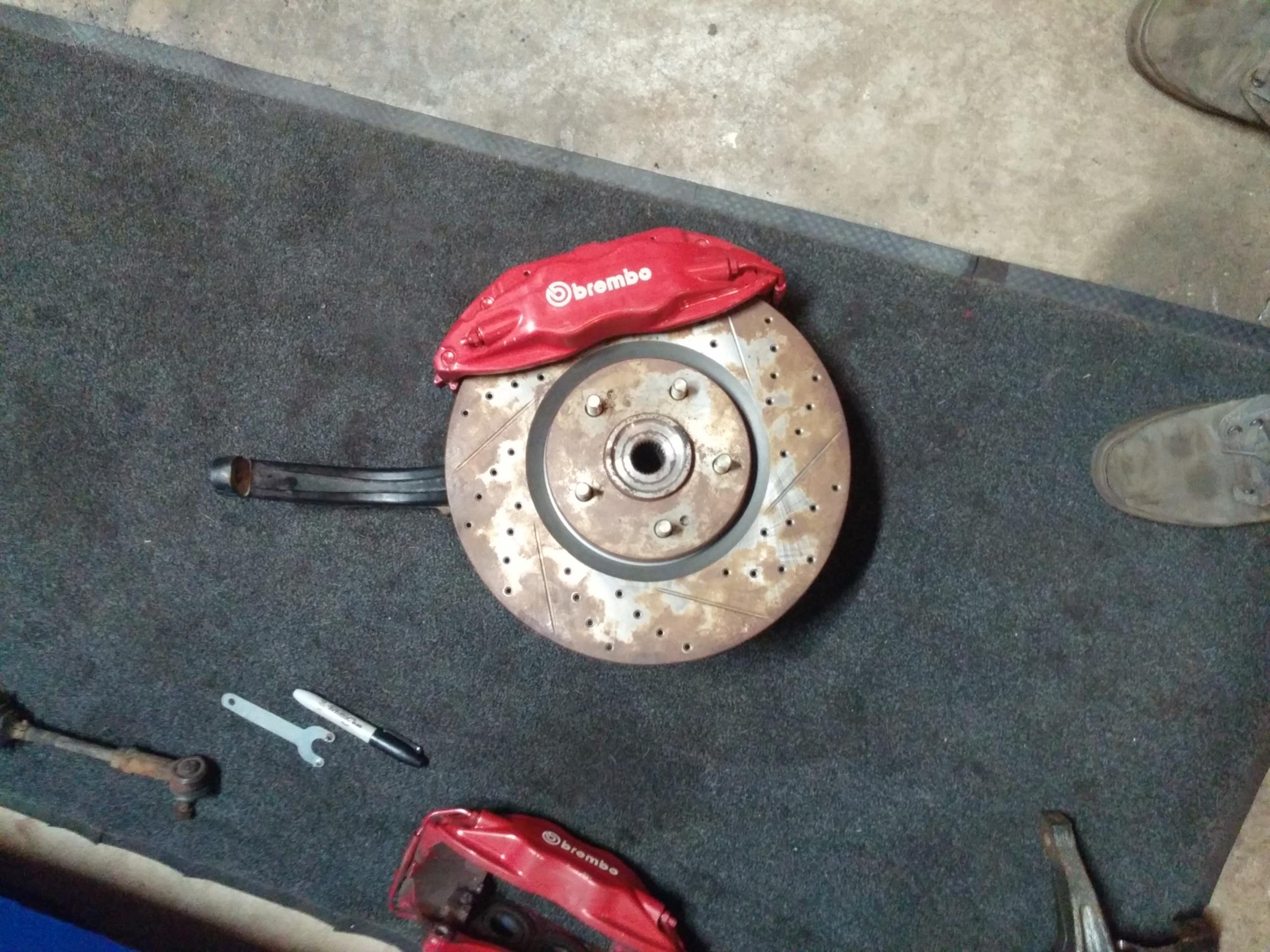 Got my brembo brackets mounted on my knuckles sending calipers off to detective coatings to be powder coated and rebuilt. Also all front end parts being blasted and coated at my work.