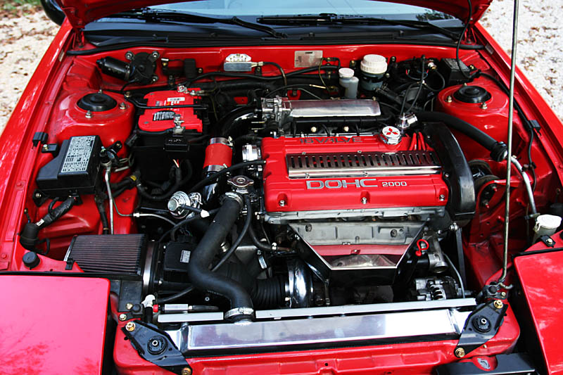 2G shift knob, 4 bolt rearend, every bolt under hood replaced with new ones, polished 1G intake manifold polished exhaust manifold cover and spark plug cover, aftermarket plug wires.