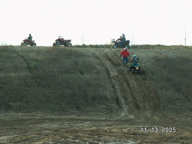 Pics a bit blurry but at least we got one from the top of the hill. With the rain it was a little slick and Mark was going to try a run at it, but decided not to.