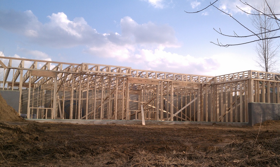 They are making some amazing progress. Every day we swing by and are amazed! The entire main level is pretty much framed. The roof is framed. It's starting to look like a house!